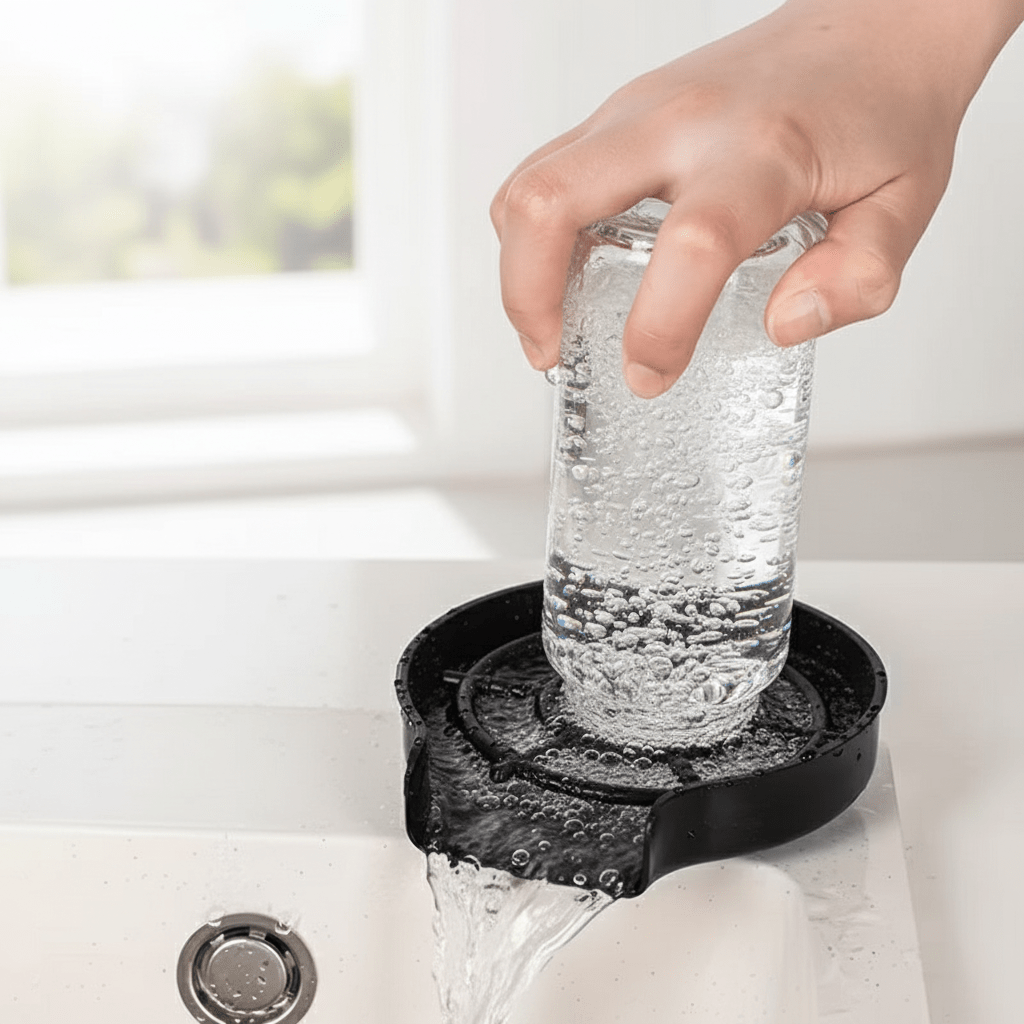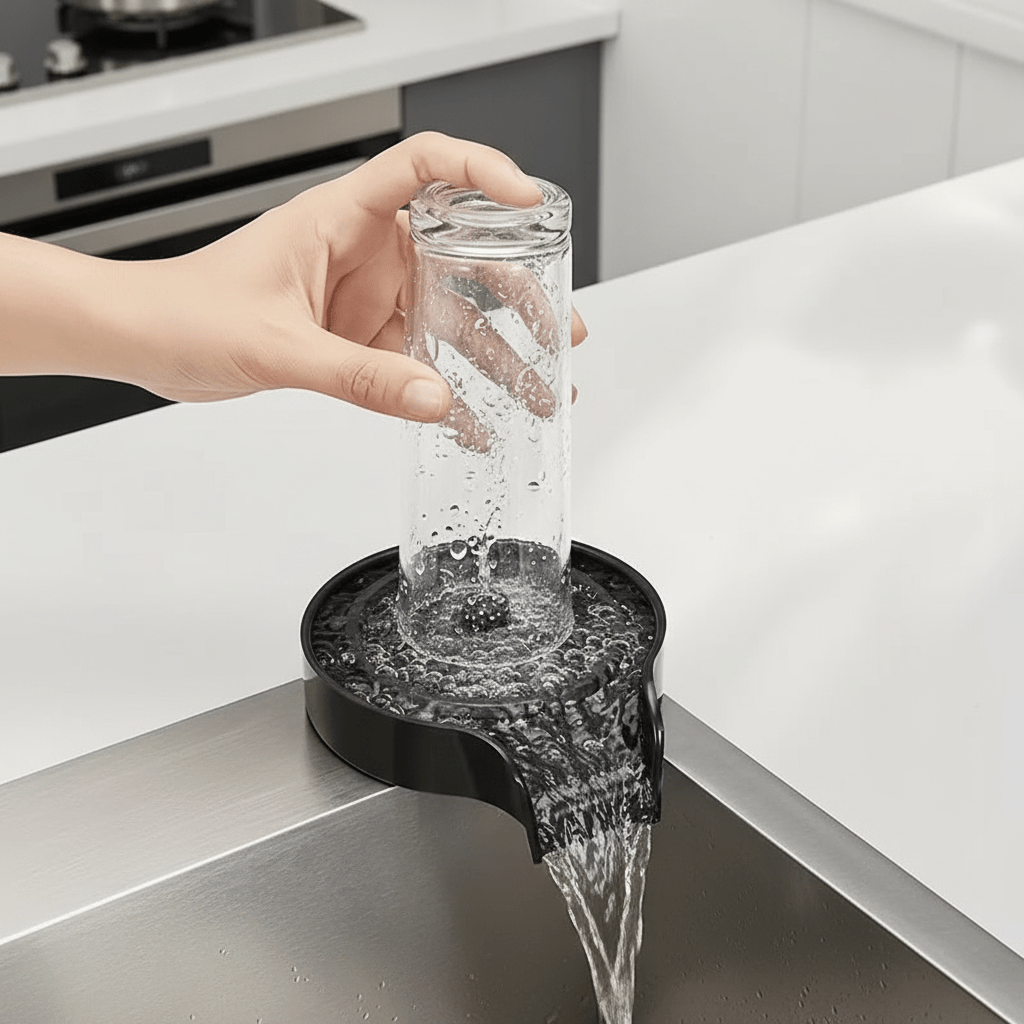 Clean bottles and glasses in seconds without scrubbing. This faucet attachment fits standard taps and uses water pressure to blast away residue from baby bottles, wine glasses, water bottles, and jars. Perfect for busy kitchens, home brewers, and anyone tired of hand-washing narrow containers.